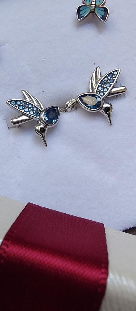 WOSTU Boucles d'oreilles en argent Sterling 925 pour femmes, créoles en forme d'oiseau bourdonnant, Clips d'oreille en cristal bleu, bijoux de mariage de luxe pour dames