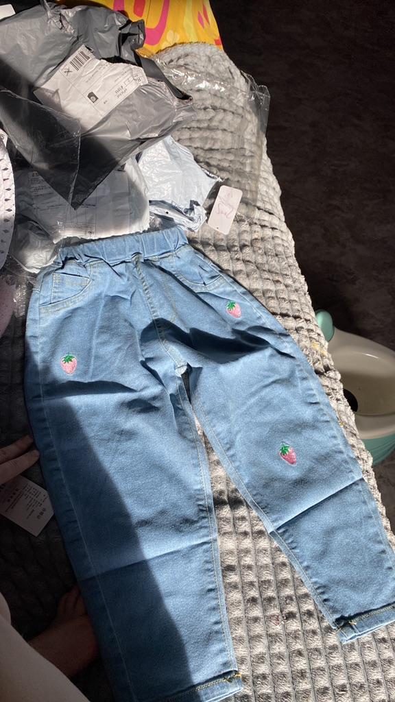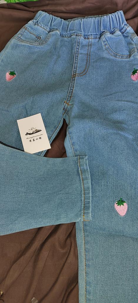 Le jean est super, la taille est juste, il n'y a pas d'odeurs étrangères, il se lave bien, ne perd pas ses poils, la ceinture est élastique, très confortable. Pour la hauteur réelle de 124 cm, elles conviennent juste à la hauteur de 140 selon la taille du site, elles taillent un peu petites