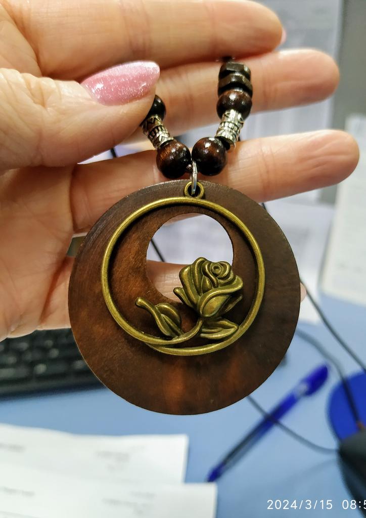 Magnifique collier en bois, je suis très satisfaite !