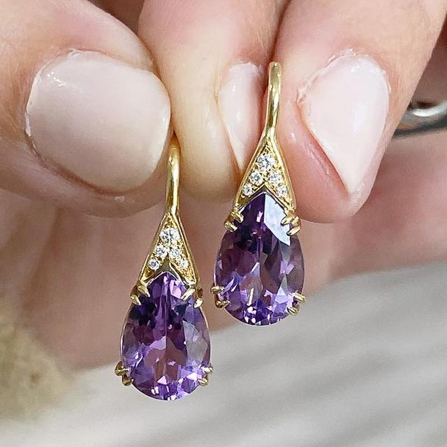 Boucles d'oreilles goutte d'eau violette CZ pour femmes, accessoires d'oreille élégants de tempérament, bijoux de fête d'anniversaire de mariage, nouvelle collection
