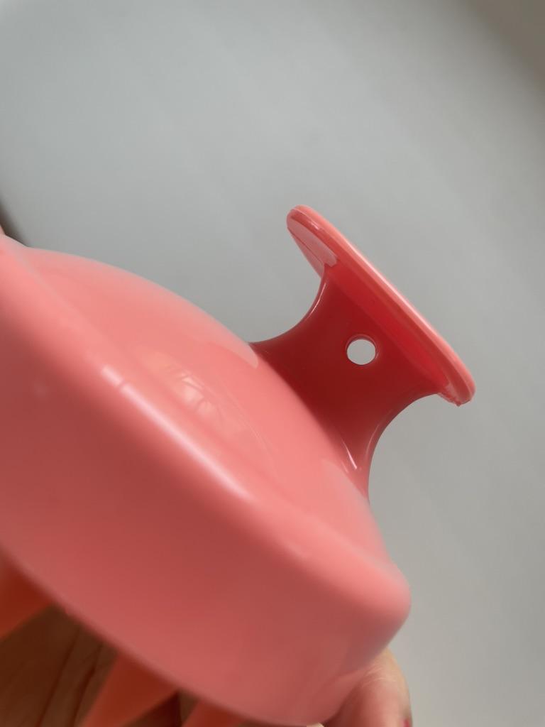 Brosse cool, confortable à tenir, il y a un trou pour accrocher une ficelle si on le souhaite, le plastique est bon, les brosses en caoutchouc sont très agréables et douces pour masser, faire mousser et nettoyer le cuir chevelu. je recommande