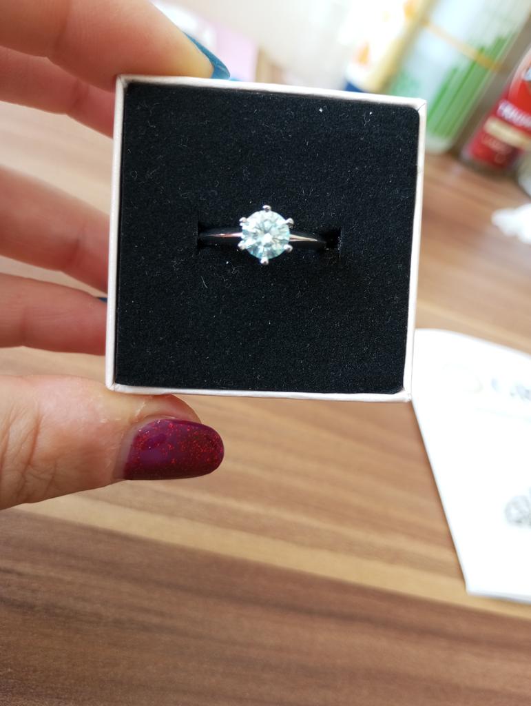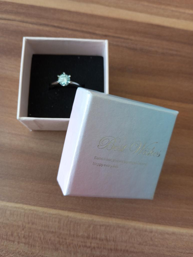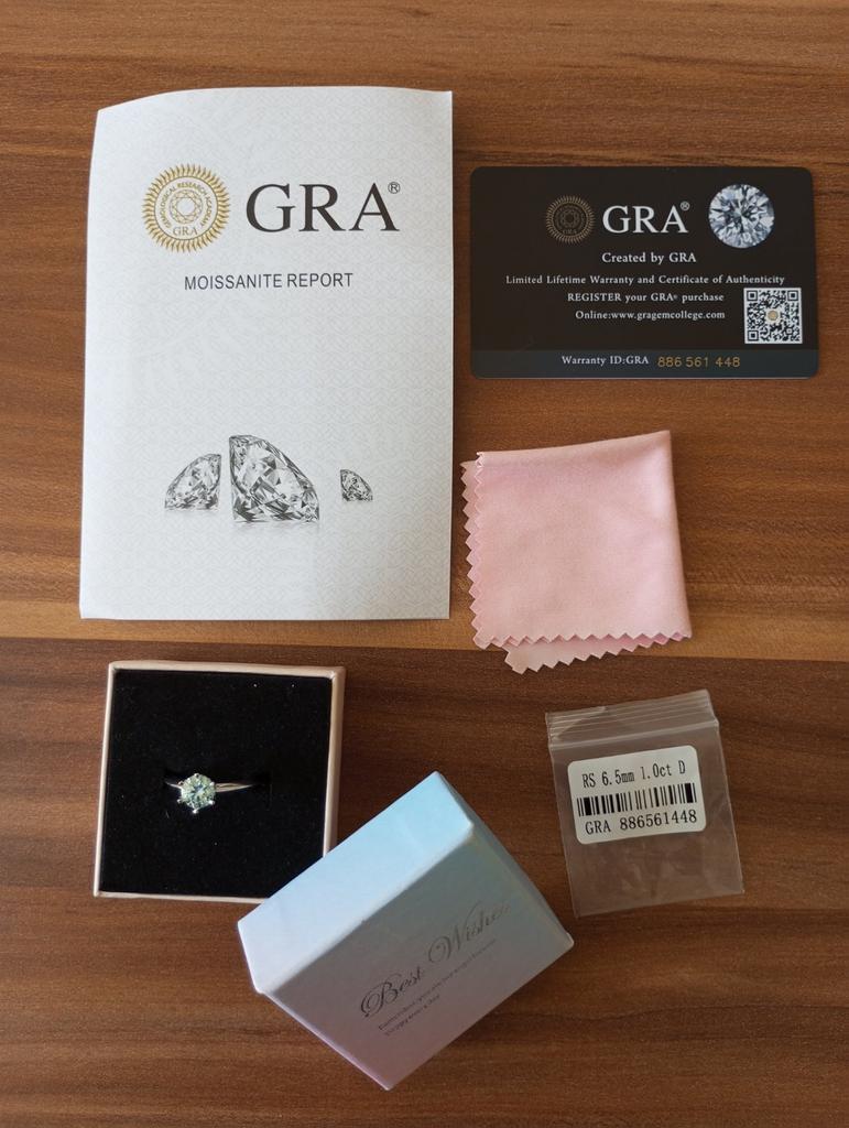 La bague est magnifique! Il y a un test, et un document sur pierre. En plus de la boîte, le vendeur a également mis un morceau de microfibre. je recommande le vendeur