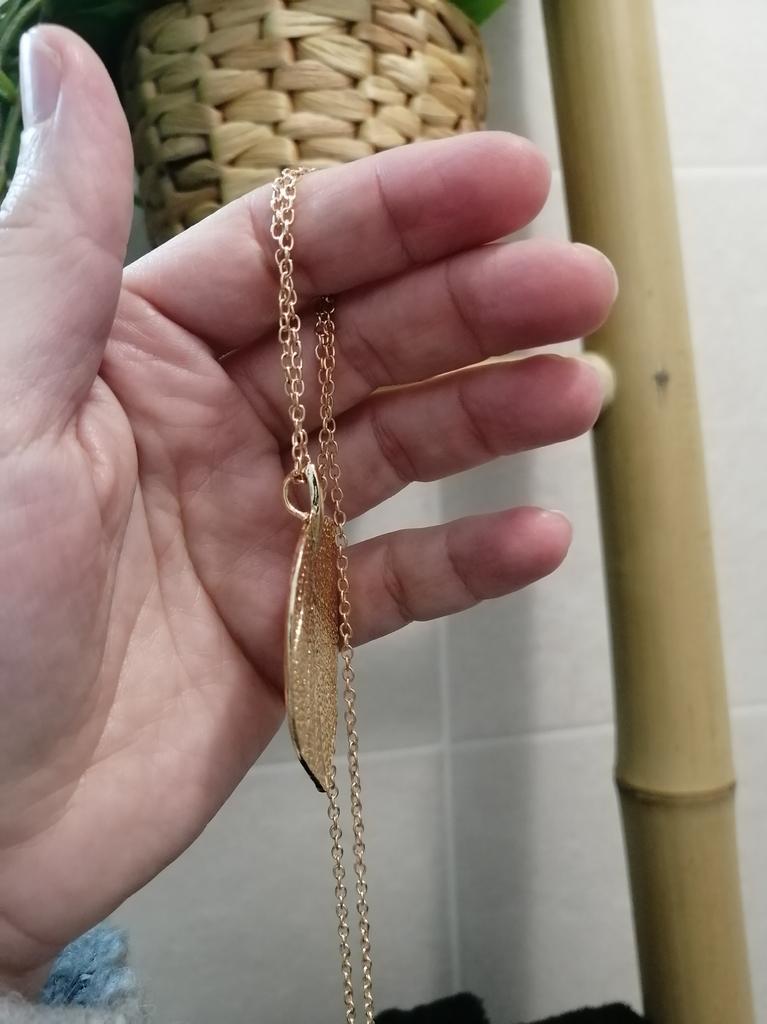 J'ai reçu la marchandise en 35 jours dans un colis combiné 🚛 La piste a été suivie complètement. L'arrivée au point d'émission a été annoncée par sms 📲. Emballage : enveloppe à bulles d'air et emballage individuel. Marchandises sans défauts. Pendentif - une feuille 🍂sur une chaîne. Le matériau est un alliage de cuivre. Décoration dorée. Une texture est dessinée sur la feuille, ce qui rend la décoration plus intéressante. La longueur de la chaîne est d'environ 52 cm + il y a une petite rallonge pour ajuster la longueur. Un tel ornement complétera parfaitement à la fois un pull confortable et une robe. Le bijou est très mignon, le temps nous le dira car il porte, pour le moment je suis satisfait de l'achat 😊. J'ajoute suffisamment de photos pour vous permettre de décider plus facilement 📸. Si l'avis vous a été utile, mettez-le en favori 💛 Bon shopping et livraisons rapides à tous 🛍😊🚀🍁