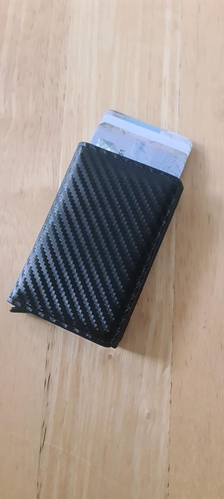 Je n'ai jamais essayé un portefeuille comme celui-ci auparavant, mais je dois dire que j'en suis très satisfait. Facile à utiliser et les cartes sont plus sûres.