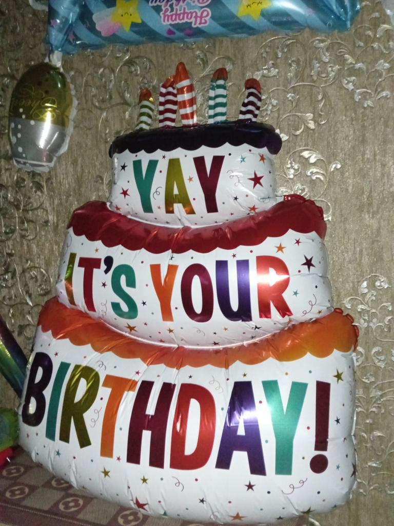 Gâteau gonflable, ballon. Grand. Je le recommande.