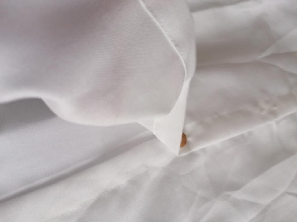 La chemise est élégante, blanche comme neige, sans ceinture, je recommande de l'acheter.