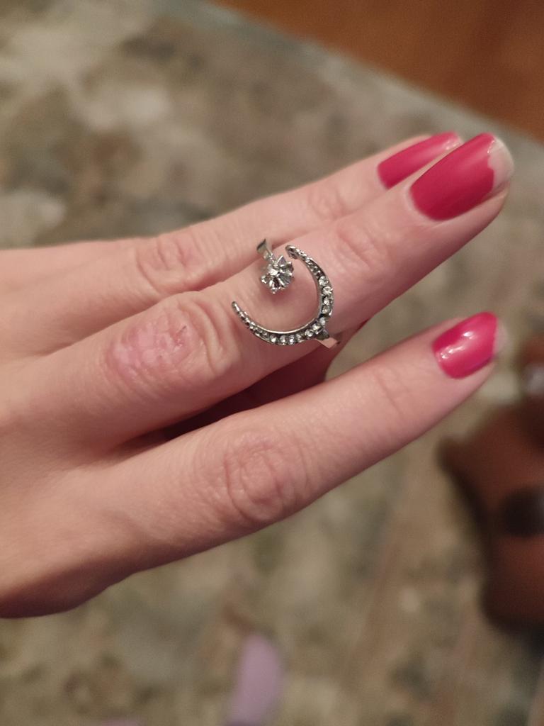 Crescent Moon Star Zircon Anneaux Ouverts Bagues De Fiançailles De Mariage Pour La Mariée Princesse Pierre De Naissance