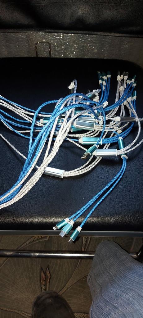 Le câble est de haute qualité et s'illumine magnifiquement lors de la charge. Il chauffe un peu avec l'adaptateur d'origine et ne prend pas en charge la charge rapide.