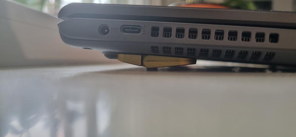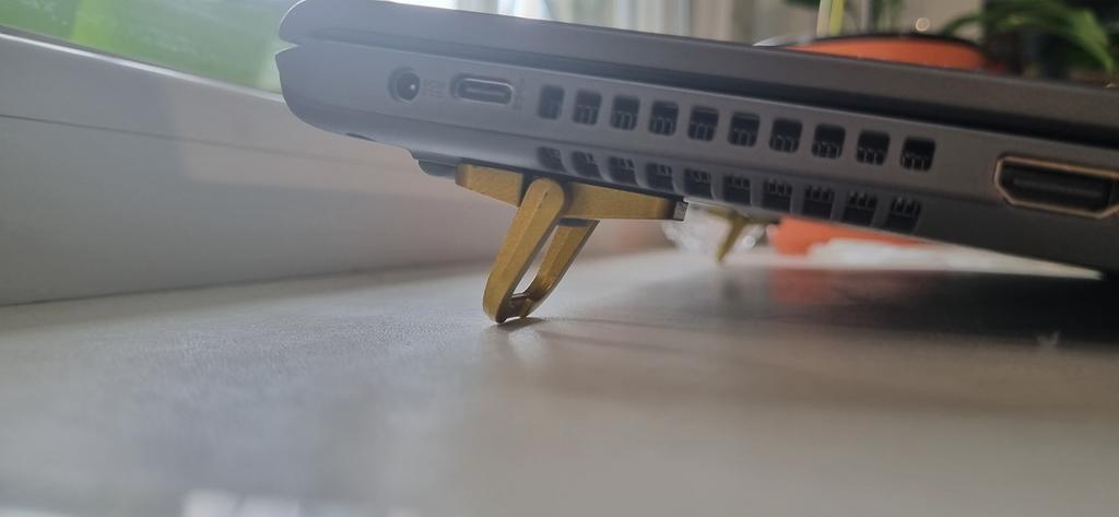 Pieds supplémentaires bien faits. L'alliage ressemble à de la silumine. Tiennent fermement sur le boîtier. Kit supplémentaire d'autocollants double face inclus. Élévation de l'ordinateur portable d'environ 2,5 cm.