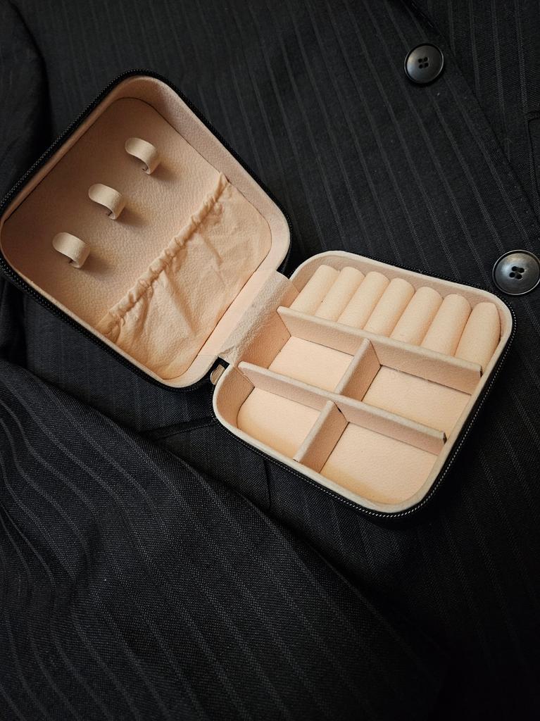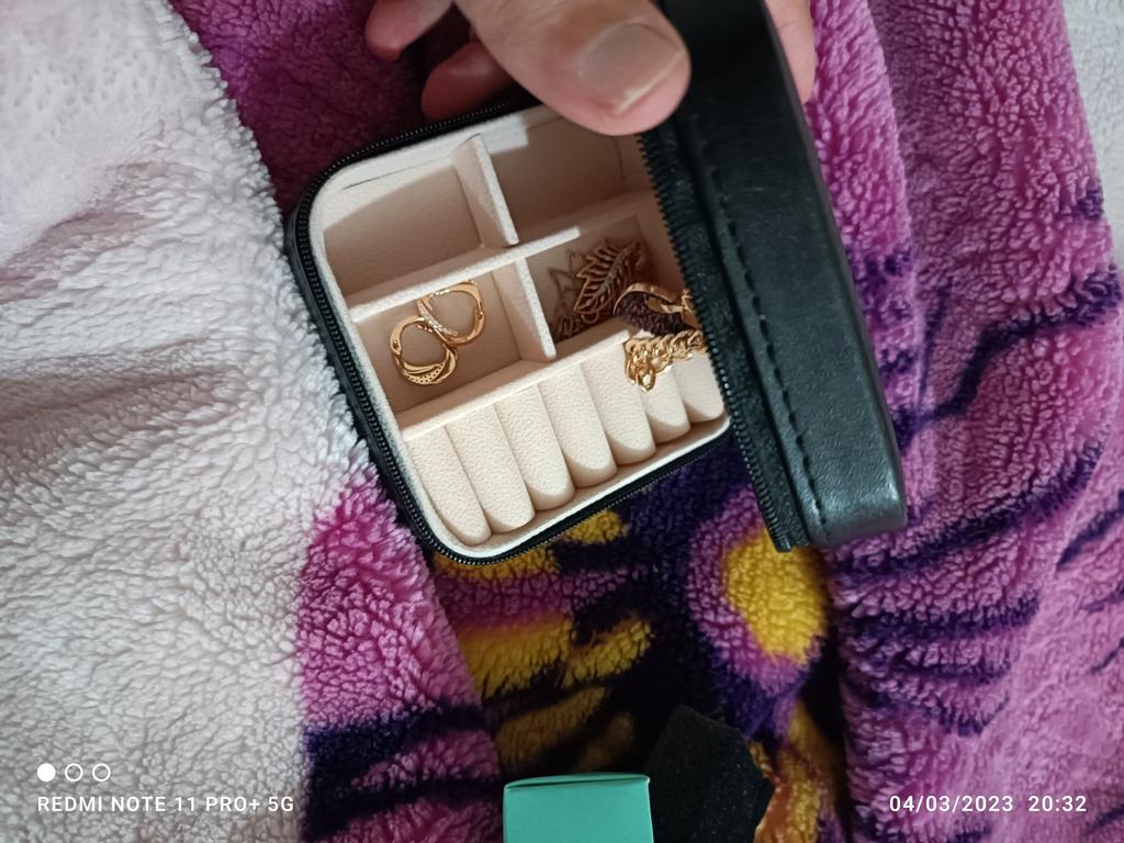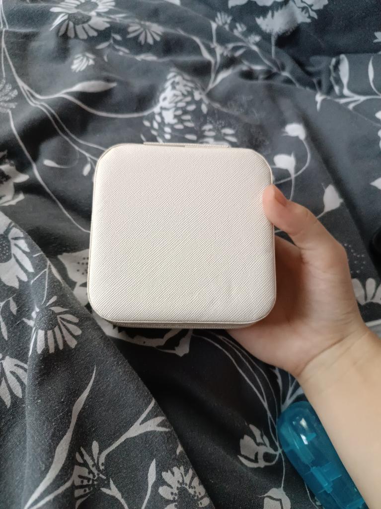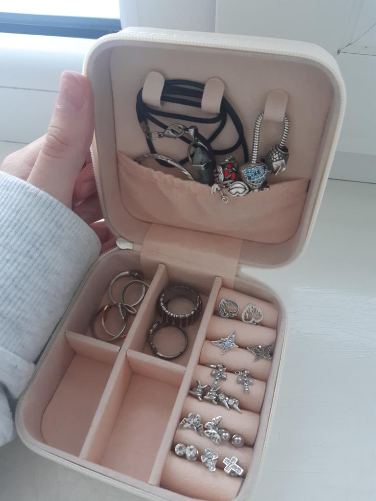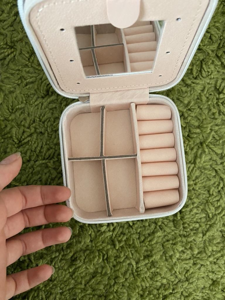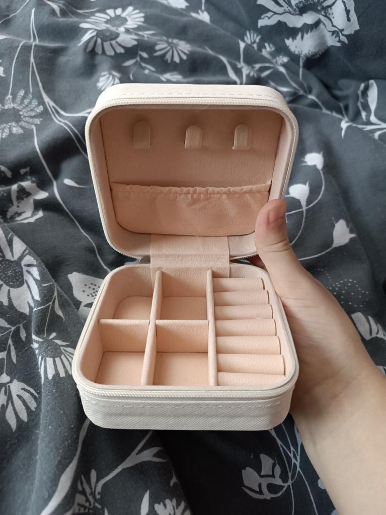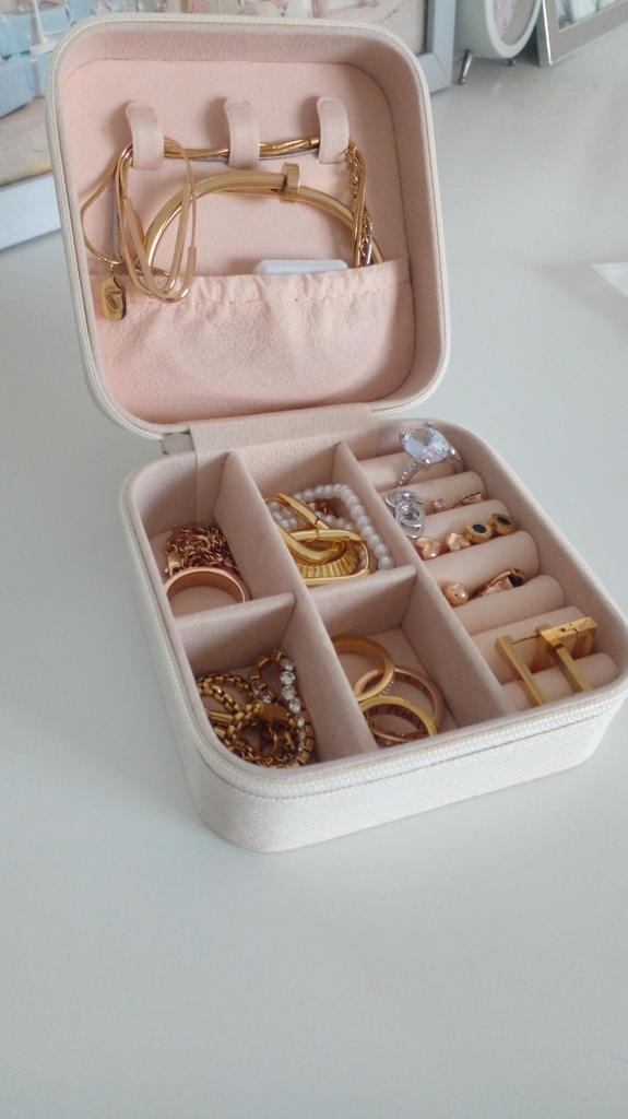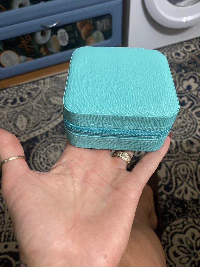 L'écrin à bijoux est parfait pour les courts voyages. Jolie couleur pastel.