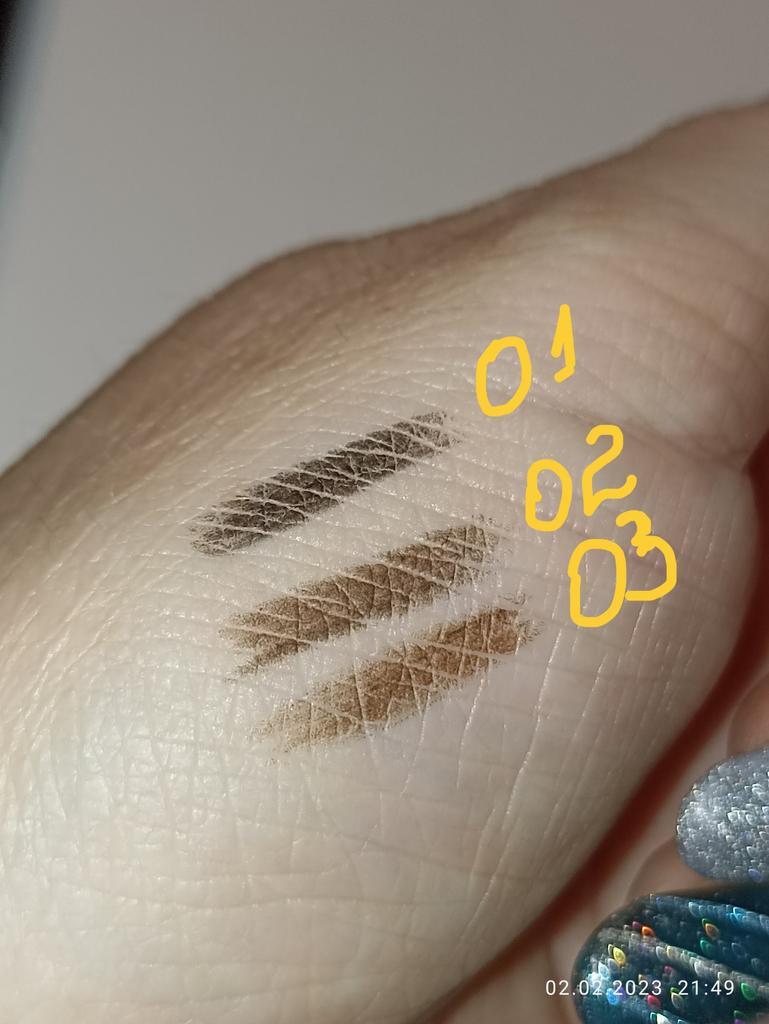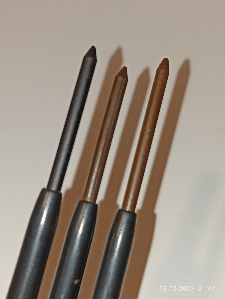 Les marrons colorent mal... On appuie avec force, et c'est douloureux pour les yeux. Pour les sourcils, ça conviendrait probablement, mais pour ceux qui ont les sourcils clairs. Par contre, le noir - il colore parfaitement !!!