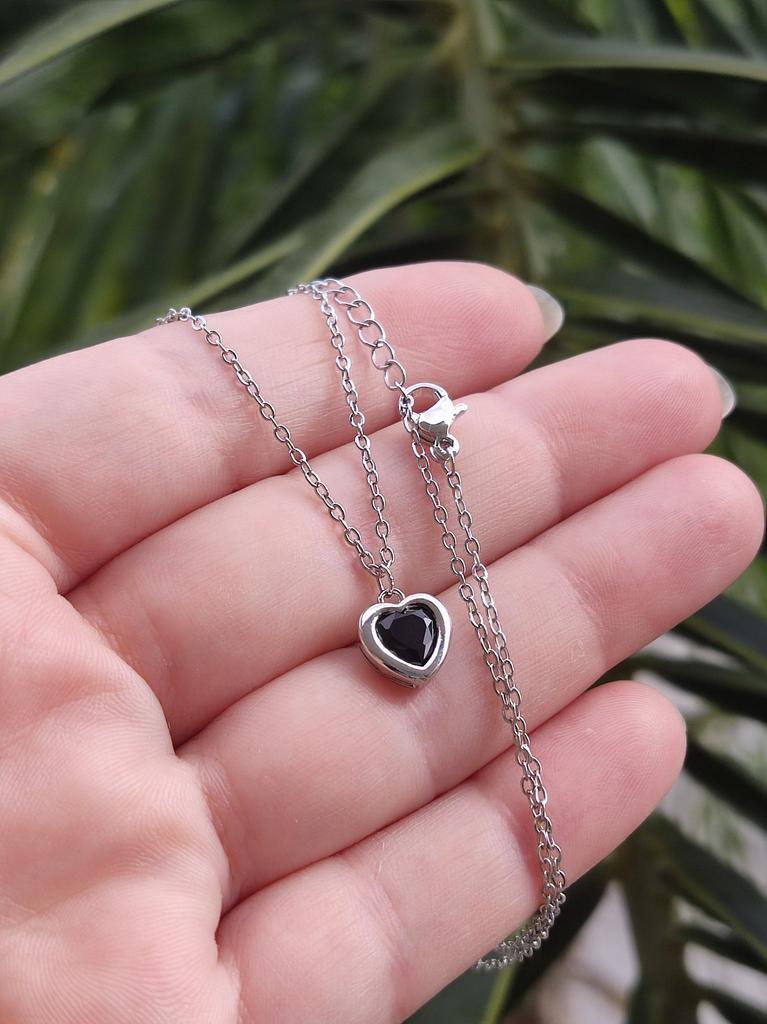 ANENEJERY Zircon coeur pendentif colliers pour femmes Simple mode clavicule chaîne accessoires bijoux