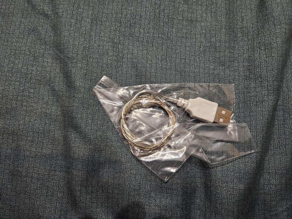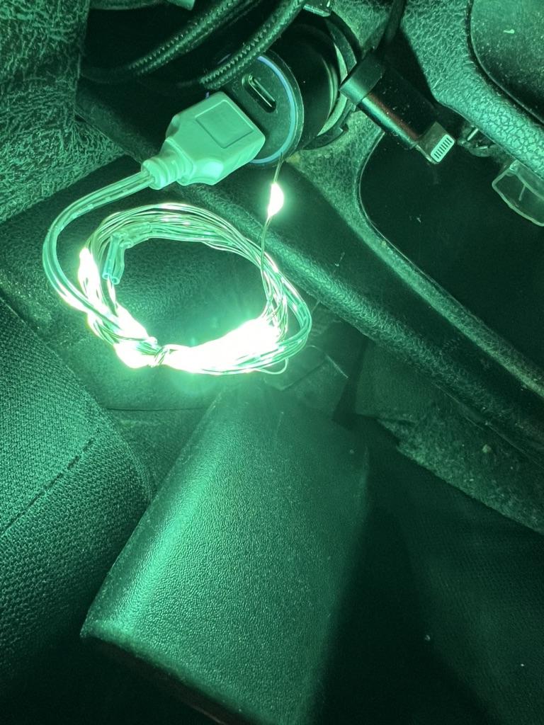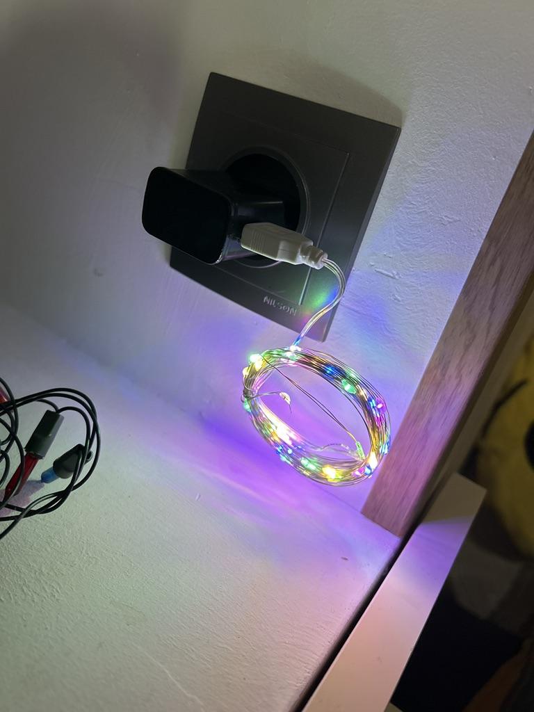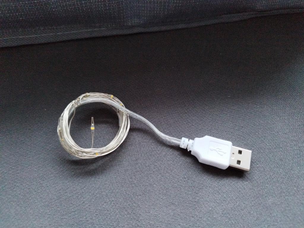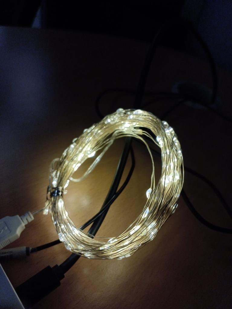 Il s'allume à partir de l'alimentation du téléphone, ressemble à un fil fin et brille de mille feux. J'espère que c'est suffisant pour une saison