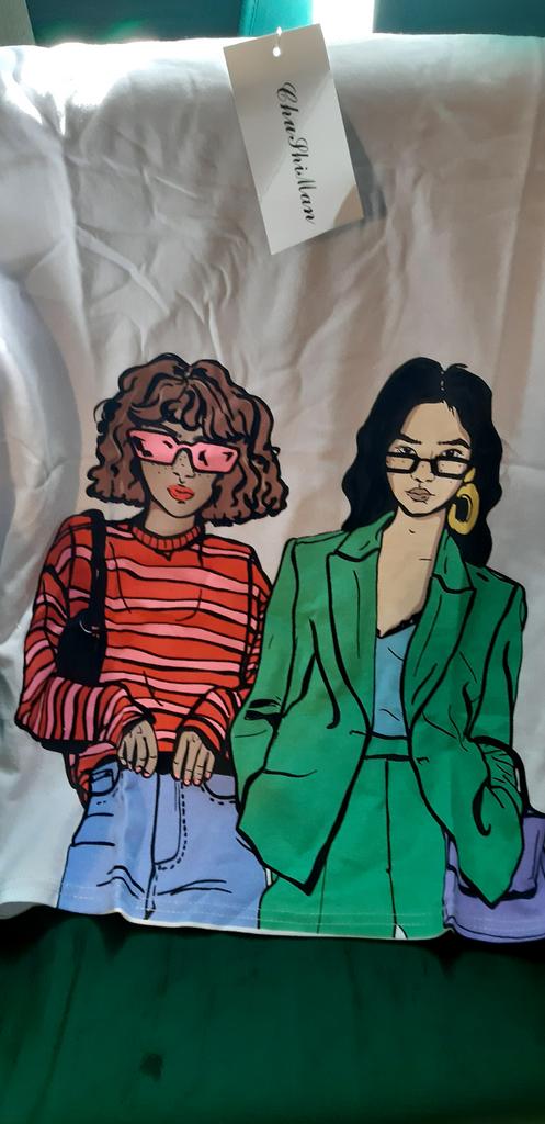 Le t-shirt convient, l'imprimé est très vif, le t-shirt est court en coton, un peu cher