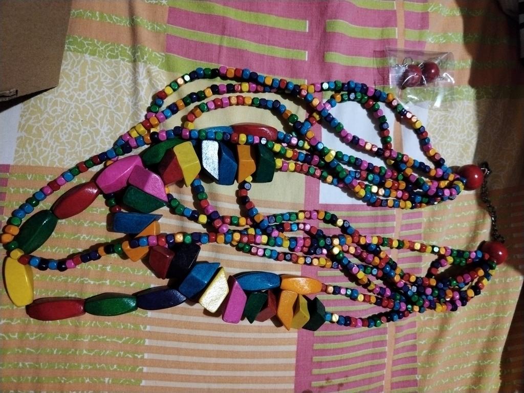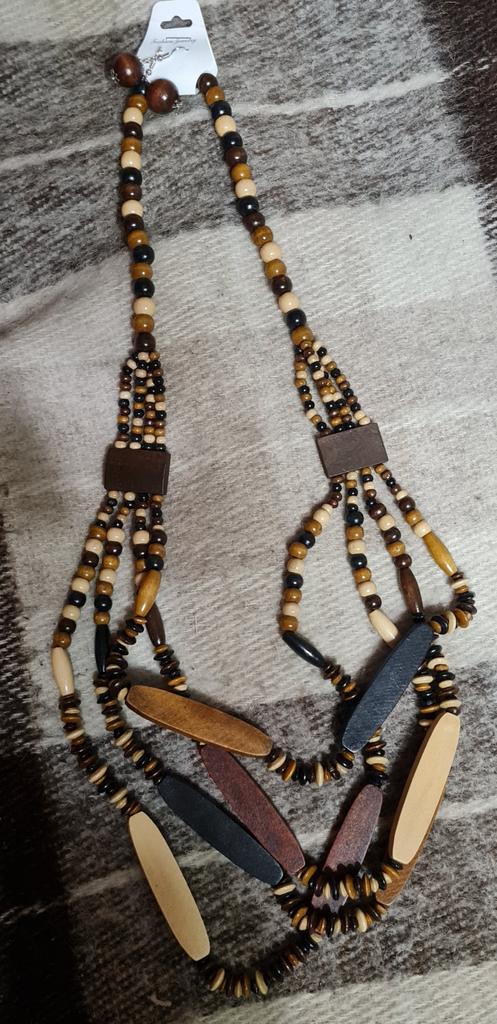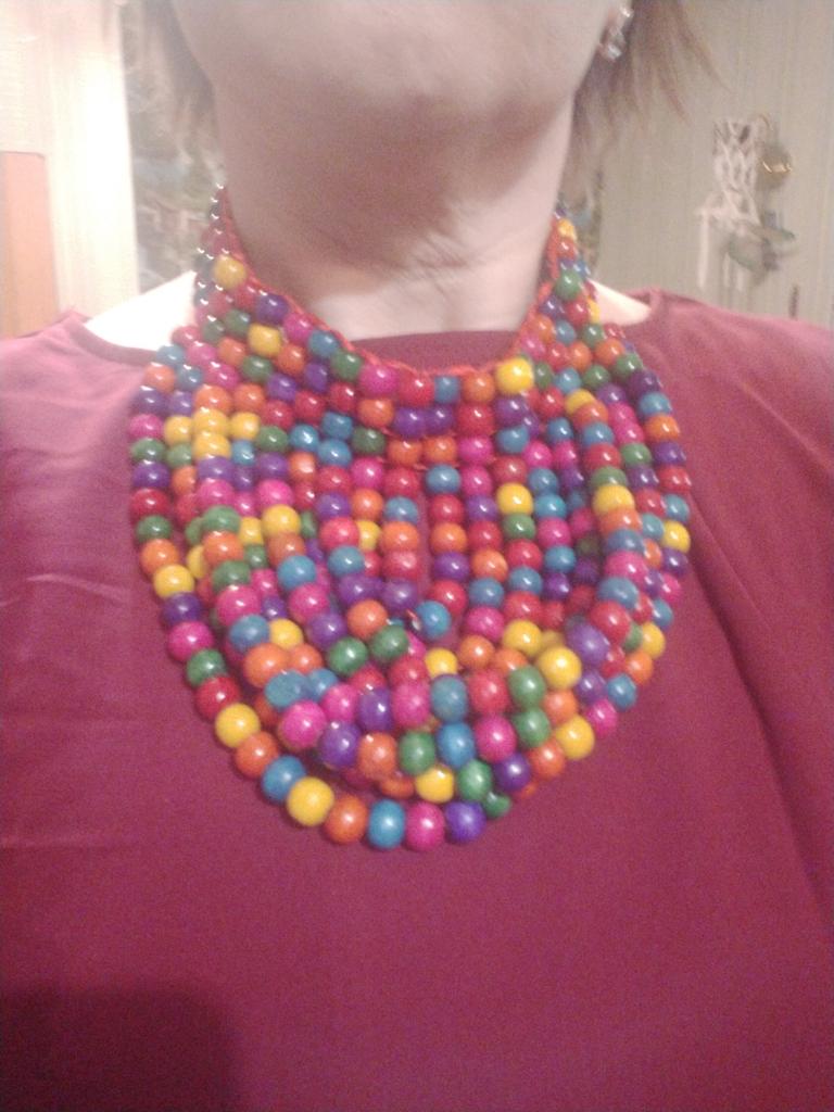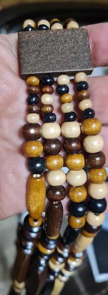 Magnifique collier de perles en bois. Qualité 100%. Léger. Assez long. Massif. La longueur n'est pas réglable.