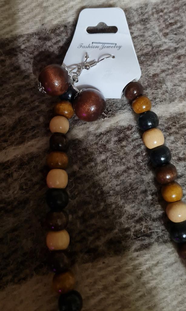 Très belles perles et boucles d'oreilles en bois. Si vous aimez les bijoux massifs, achetez-les, vous ne le regretterez pas.