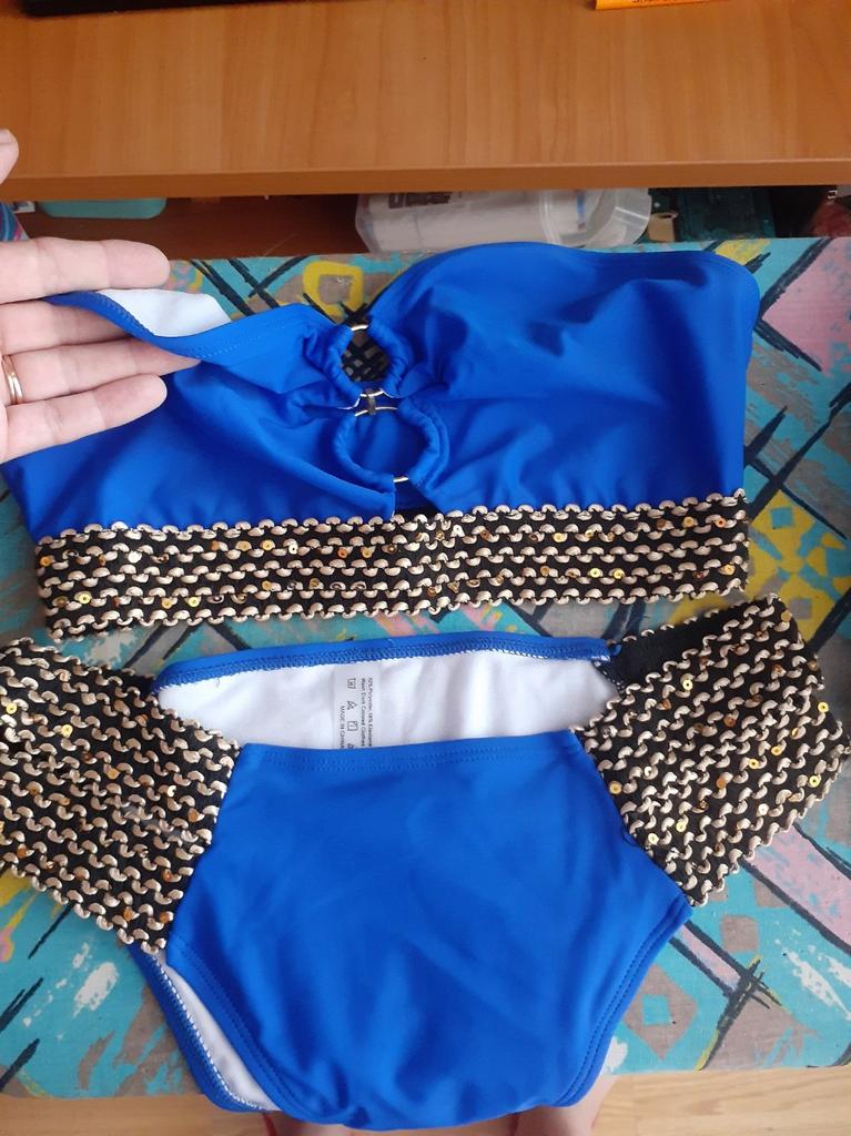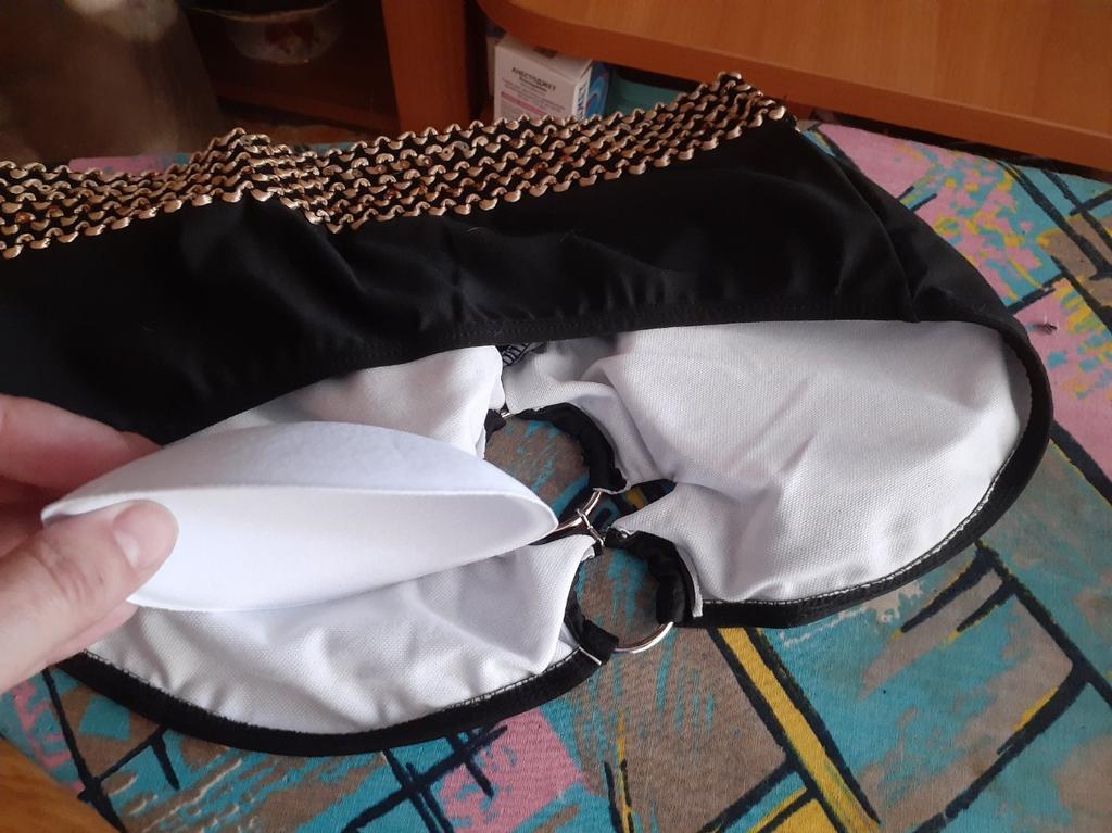 Magnifique maillot de bain spectaculaire. Il est un peu gênant de mettre un soutien-gorge, surtout si votre corps est mouillé après l'eau. Mais les coutures sont plates, faites assez soignées. Il semble qu'il sera nécessaire de proposer séparément des bretelles amovibles pour un ajustement plus serré.