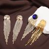 Boucles d'oreilles pendantes pour femmes, boucles d'oreilles à pampilles en verre et cristal géométriques multicouches exagérées