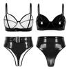 Ensemble de Lingerie 2 pièces en cuir verni effet mouillé pour femmes, sans fil, soutien-gorge non rembourré, haut et slip, ensemble Clubwear