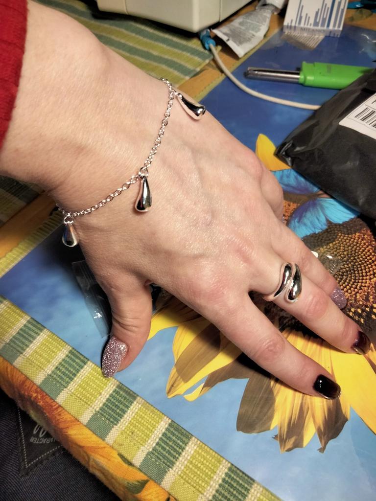 Ensemble plutôt sympa. Chaque article est correctement emballé avec un échantillon imprimé dessus. Je le porterai avec amour. La bague est réglable.