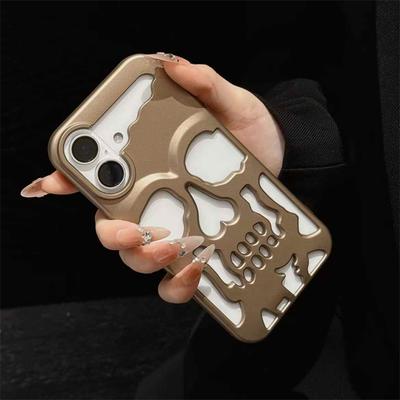 Coque de téléphone cool et creuse en 3D avec tête de mort pour iPhone 16 15 14 Plus 13 12 11 Pro Max, design squelette gothique plaqué, coque antichoc