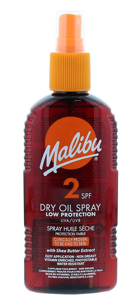 Malibu Spray d'huile sèche SPF2 Huile de protection solaire bronzante 200 ml