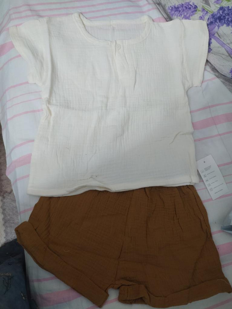 Ensemble de vêtements d'été pour bébés filles et garçons, T-shirt + short en coton, vêtements en lin pour enfants de 1 à 6 ans