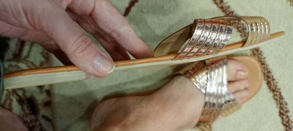 Pour les pieds 26-26,5, la taille 43 est bonne. La semelle est fine et claque sur le talon lors de la marche
