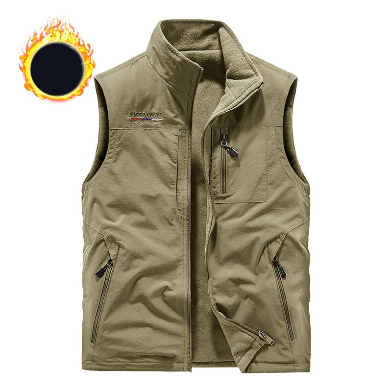 Gilet de sport en velours pour hommes d'âge moyen et âgés, gilet de loisirs multi-poches à séchage rapide, automne/hiver