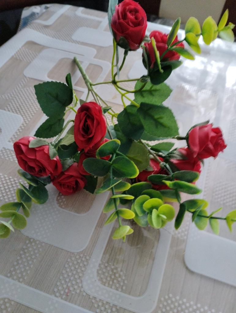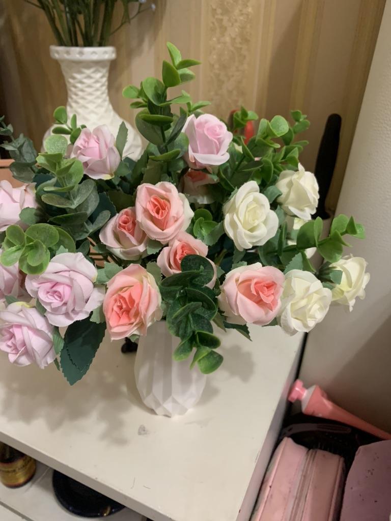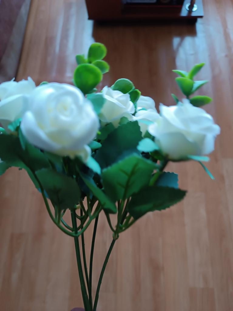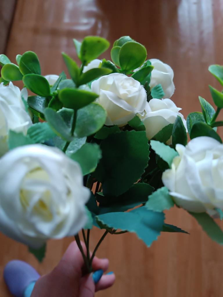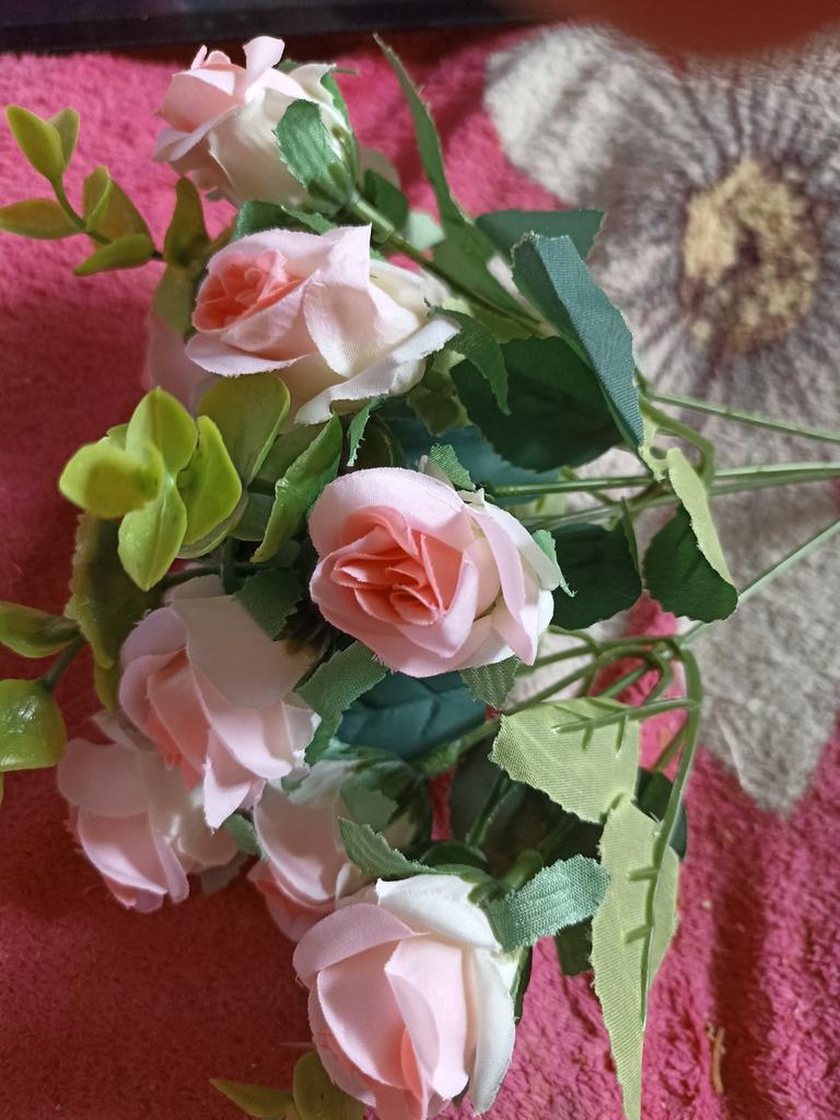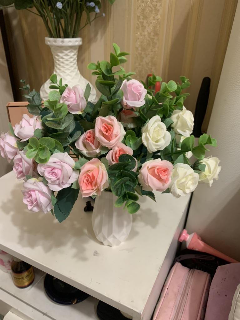 Les fleurs que j'ai achetées avant sont dans un vase comme de vraies, elles sont très belles, mais celles-ci sont un peu évidentes qu'elles sont artificielles, la couleur est un peu décalée 🤣