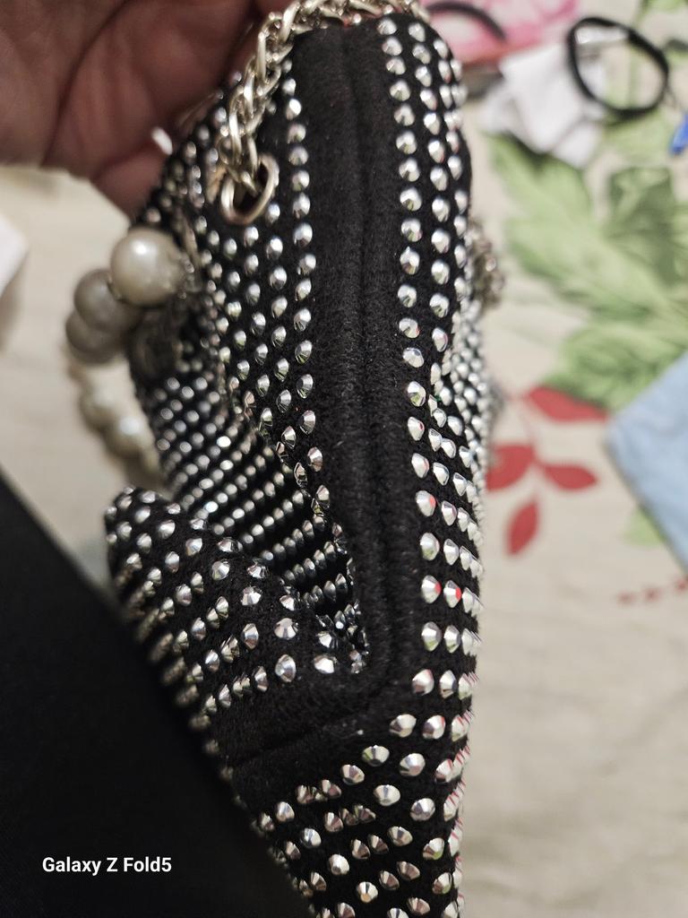 Le sac à main n'est pas comme sur la photo. Il devrait y avoir deux œillets pour la poignée et la chaîne devant et deux derrière, mais il n'y en a que deux, un de chaque côté. À cause de cela, la poignée en perles pend de travers et n'est pas jolie. Il manque un strass sur la poignée. Il n'y a pas du tout de strass le long des coutures, alors que sur la photo, il y en a partout.