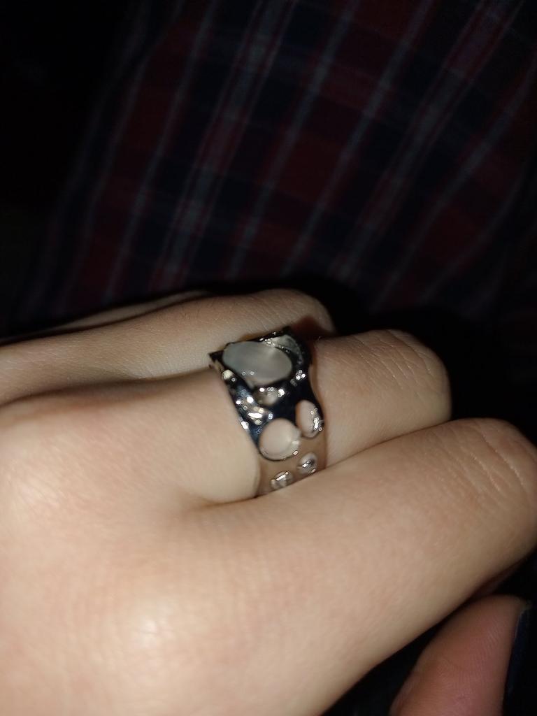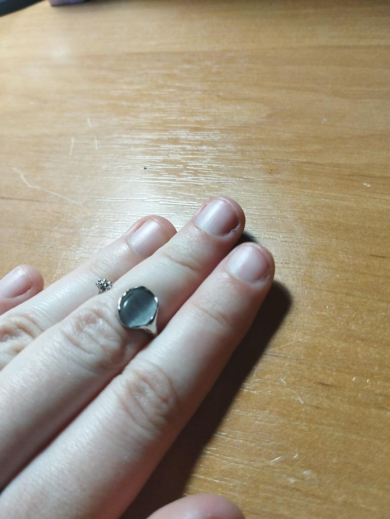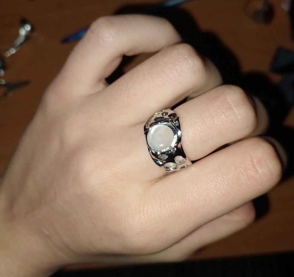 Avantages : presque comme sur la photo ; tient confortablement sur la main, réglage de la taille ; Inconvénients : le galet est collé légèrement de travers, pas très visible Après un certain temps, la bague s'est fissurée et s'est cassée lors du réglage de la taille