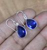 Boucles d'oreilles pour femmes avec crochet en argent sterling 925 et topaze bleue WHE-E44