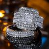 Bagues de fiançailles de luxe pour femmes, grandes bagues géométriques argentées, bagues de mariage carrées en zircone