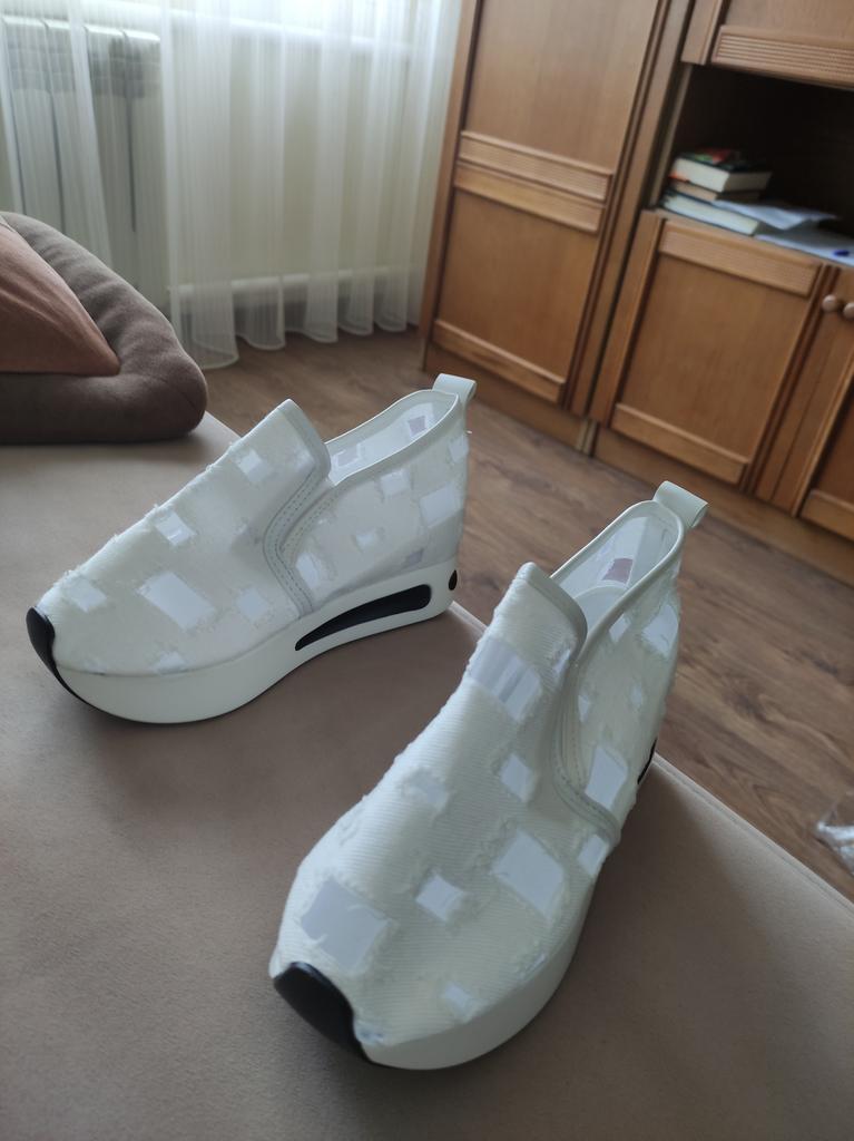 Chaussures de style sportif très légères. La taille 42 convient bien à un 39. J'ai un pied très large avec un cou-de-pied haut, les chaussures s'adaptent parfaitement. Plateforme très haute, veuillez en tenir compte lors de l'achat.