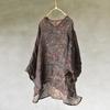 Johnature Femmes Vintage Ramie imprimé Floral T-Shirts ample col en v sept manches T-Shirts été mince femmes T-Shirts