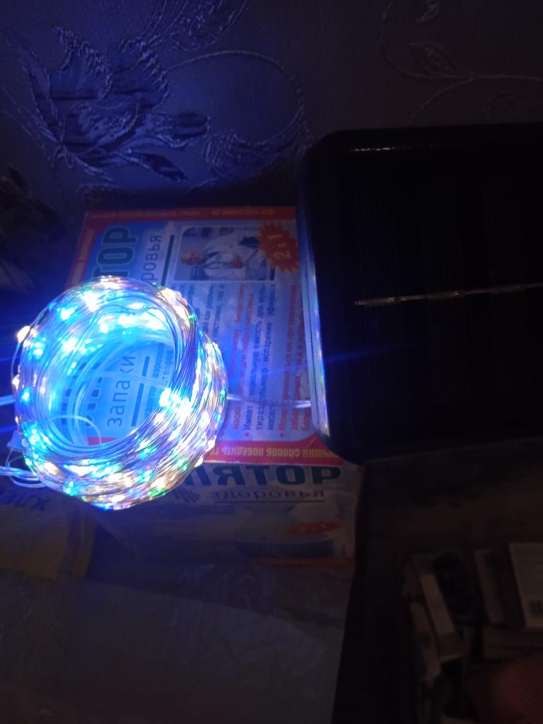 Excellente guirlande. Elle a fonctionné tout l'hiver et fonctionne encore maintenant. La charge dure toute la nuit.