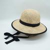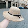 Version coréenne du nouveau chapeau cloche en raphia à bord roulé avec nœud à la mode, chapeau de bassin pour voyage en extérieur et protection solaire, visière, chapeau de paille