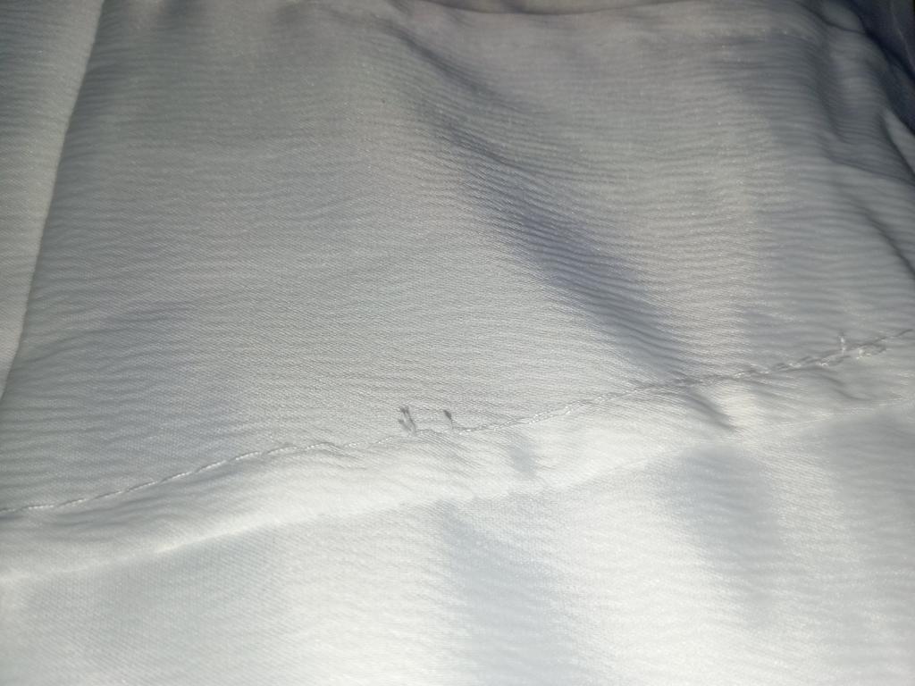 Le produit est arrivé, de mauvaise qualité, le pli avant est cousu de travers, affreusement, sans ruban à l'arrière, les fils dépassent et s'effilochent. Je veux retourner le produit et mon argent.