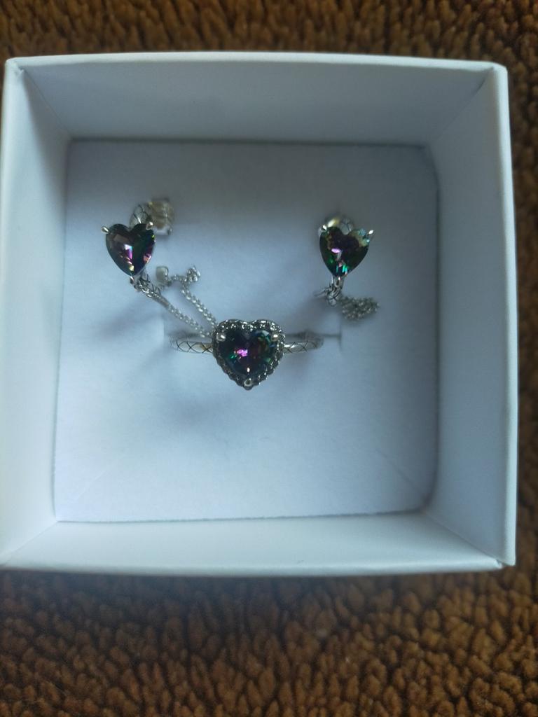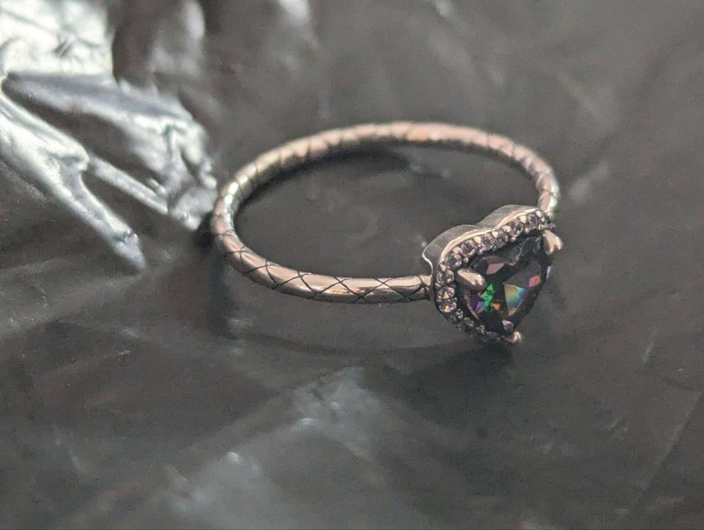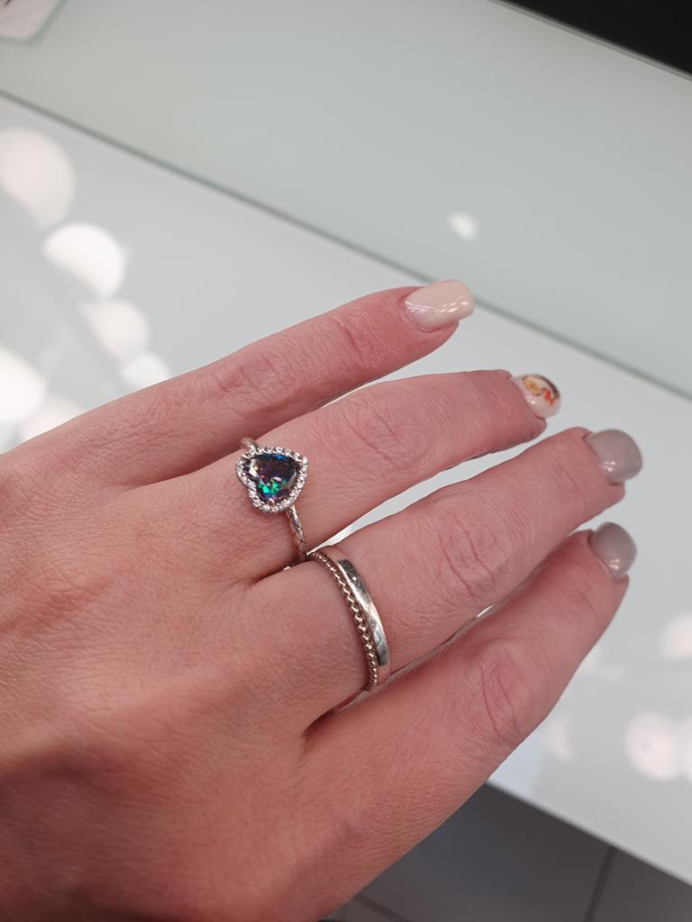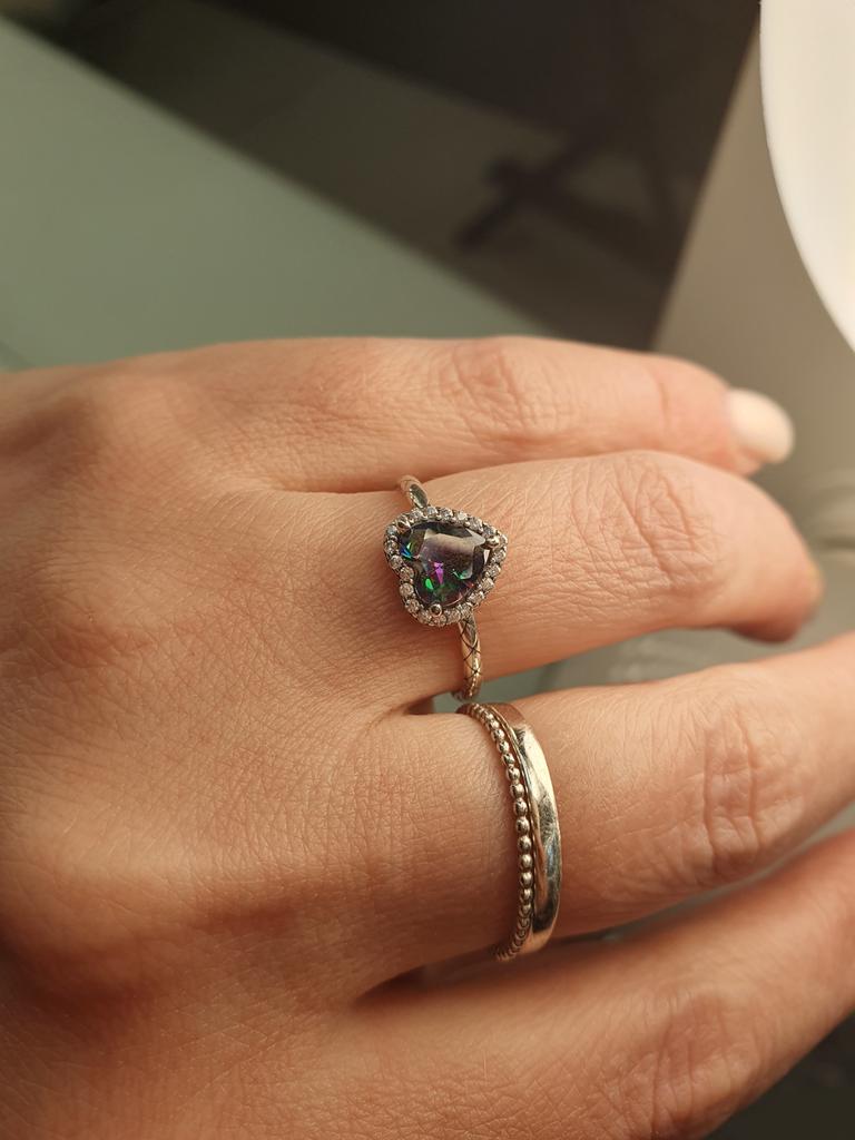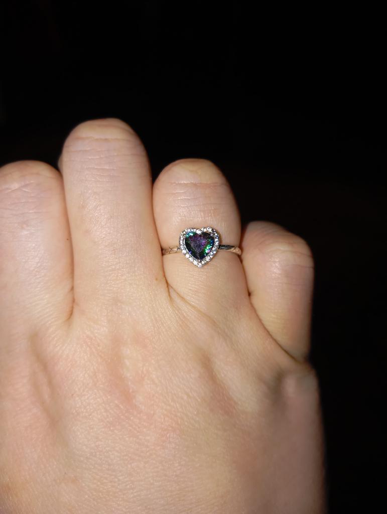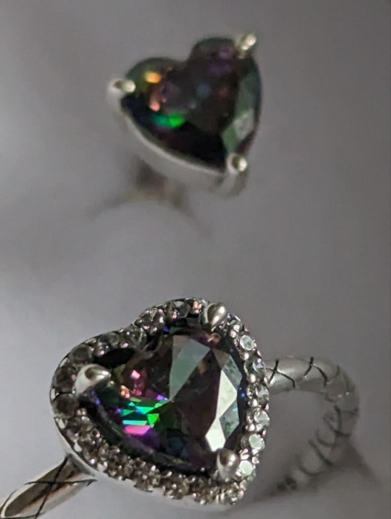 Magnifique bague en argent, la pierre est simplement du quartz mystique, elle joue et révèle toutes les couleurs de l'arc-en-ciel, elle pourrait être un peu plus grosse, mais peut-être ainsi est-elle plus mystérieuse, le poinçon est présent, merci ☺️ je recommande !!!