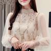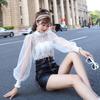 Chemisier à manches lanternes pour femme, haut, mode coréenne, élégant, Chic, Sexy, maille transparente, paillettes, automne