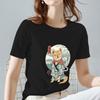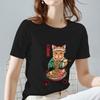 Vêtements pour femmes t-shirts hauts mode décontracté dessin animé japonais Orange chat motif impression mince col rond banlieue noir T-shirt