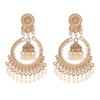 Boucles d'oreilles rondes classiques Vintage couleur or pour femmes, style bohème, cloches à fleurs, pompon en perles, bijoux indiens Jhumka