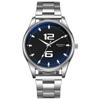 Montre à quartz tendance pour hommes avec verre bleu clair et bracelet en acier inoxydable