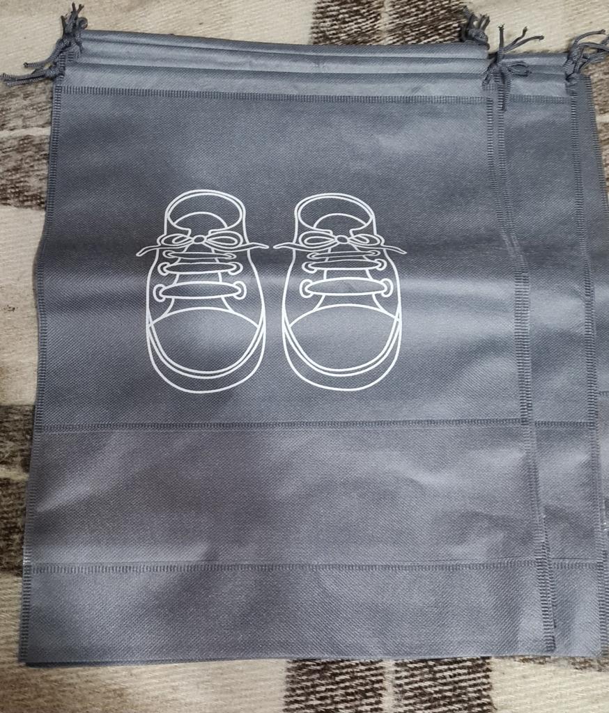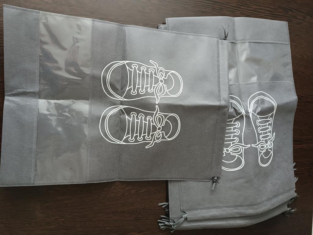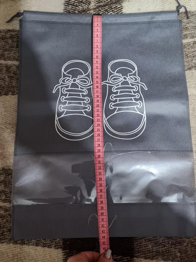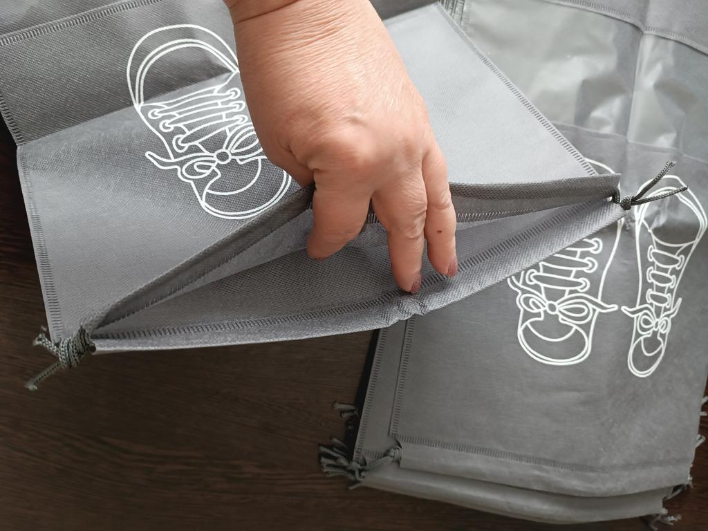 Sacs de rangement pour chaussures remarquables, la taille est décente - j'ai pris le plus grand, pour que les chaussures d'homme puissent aussi tenir. Mesures sur la photo. Qualité excellente, épais, avec une fenêtre pour voir quelles chaussures sont dans le sac. Dans l'emballage, il y en a 10.