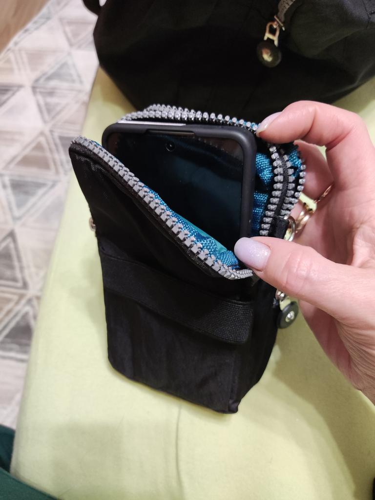 En tant que trousse à cosmétiques, elle peut contenir un téléphone et d'autres petits objets trouveront leur place dans les 2 autres compartiments.
