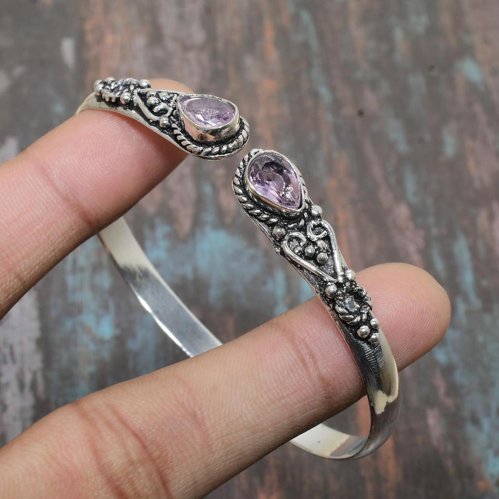 Belle améthyste pierre précieuse bijoux de manchette faits à la main bracelet en argent Sterling 925 réglable