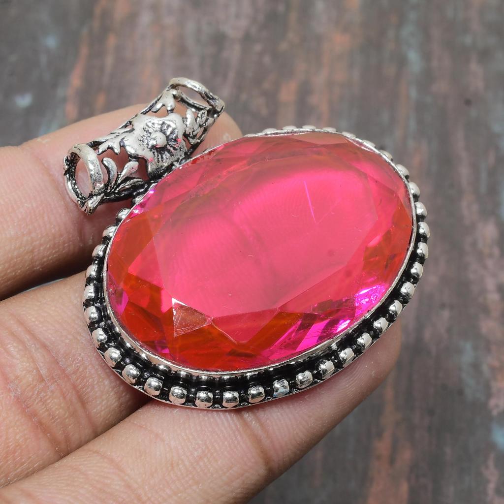 Charmant pendentif de bijoux en argent sterling 925 fait à la main en rubillite rose