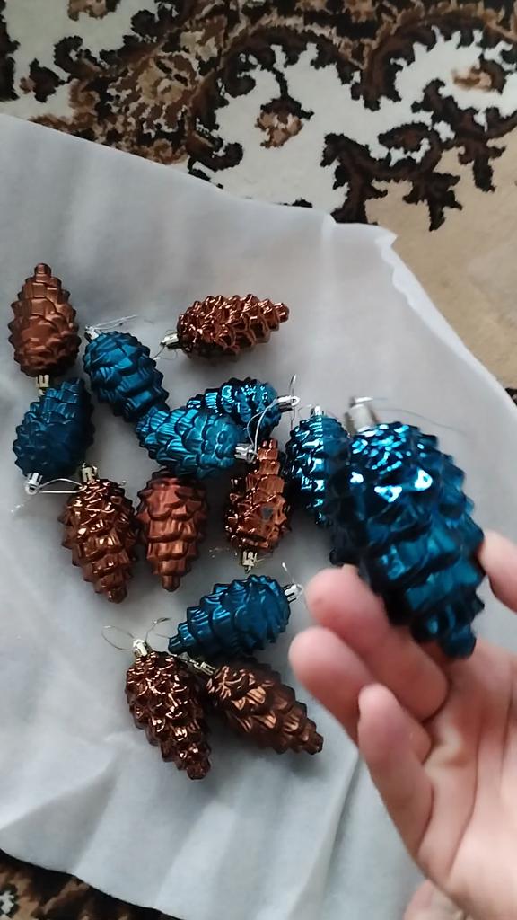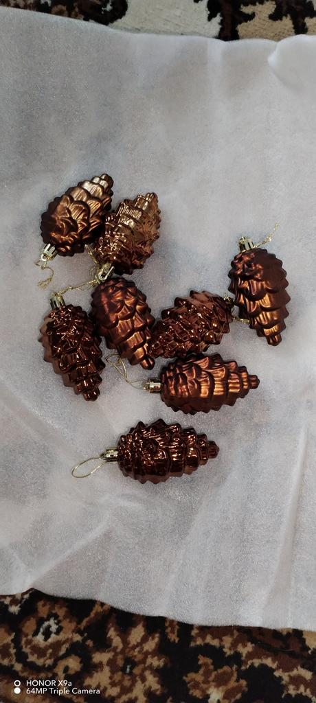 Pendentifs en forme de pomme de pin avec lanière, 8 pièces, couleur vive scintillante, incassable, ornements d'arbre de noël, accessoires Photo