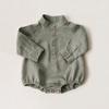 Combinaison et casquette d'hiver pour bébé, barboteuse tricotée à manches longues et simple boutonnage de couleur unie, de 0 à 18 mois